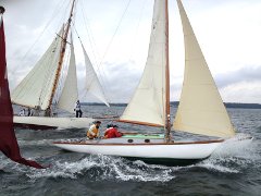 Møgvejr eller ej. Spektakulært var det at skue de mange kæmpende lystbåde fra tidsalderen med træ som bådebyggernes eneste materiale. Især blev øjnene fanget af Sophus Weber Racets to største både.